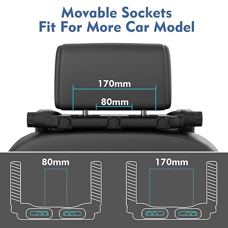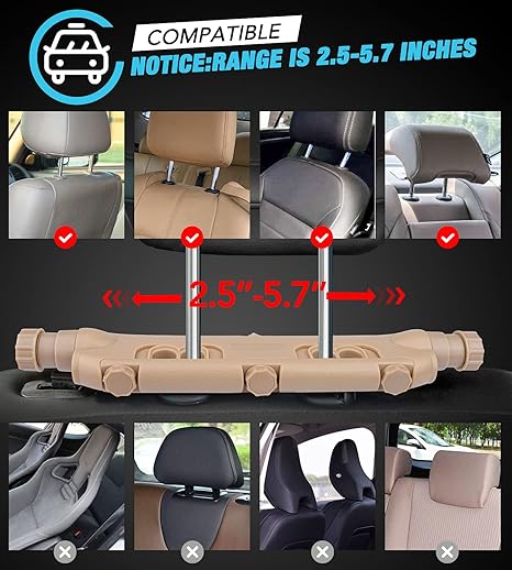 Fits most cars with removable headrests (rod distance: 2.5"–5.7"). Not compatible with fixed headrests.